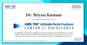 Dr. Kansas has been designated as a Center of Excellence for Inflatable Penile Prosthesis for the treatment of Erectile Dysfunction.